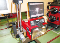 測定器で光軸の向きを測定し、適正値に収まるよう調整します。